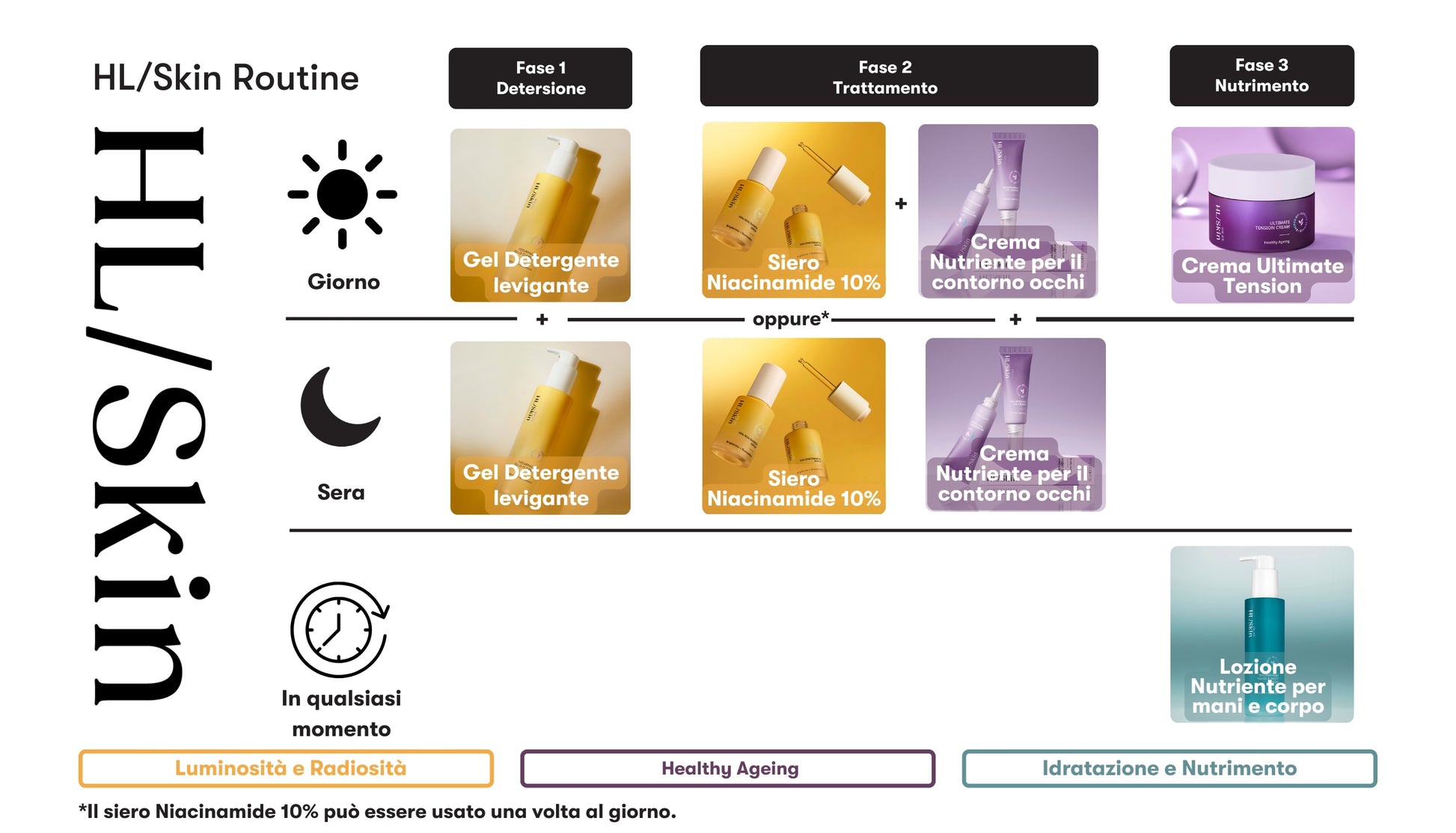 HL/Skin Gel Detergente levigante non contiene parabeni o solfati aggiunti. Utilizzare mattina e sera per detergere delicatamente la pelle, un lavaggio alla volta.